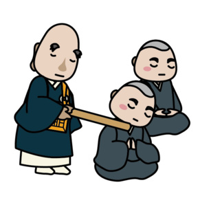 この場合のビンタは、禅の修行で行われる警策による打擲(修行者の眠気や雑
