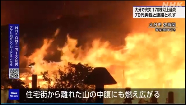 スレッドタイトル:大分市 火事 170棟以上延焼と発表、半日以上燃え未だ鎮火の目途立たず