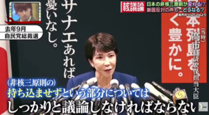 非核三原則は、もう古いよ。使わないけど、持ちましょうよ。なんて高市さんが言ったら大変なことになるんだろーな。まぁ