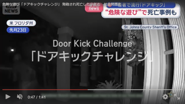 スレッドタイトル:アメリカで「ドアキックチャレンジ」が大流行→住人に撃たれて死亡