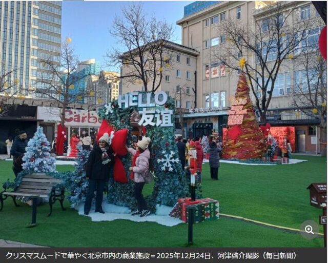 クリスマスイブの24日、中国・北京市の街角でも巨大ツリーなどの装飾が施された。一方、各地の学校では、児童や生徒がクリスマスを祝うことを禁じる通達が出た模様だ。
