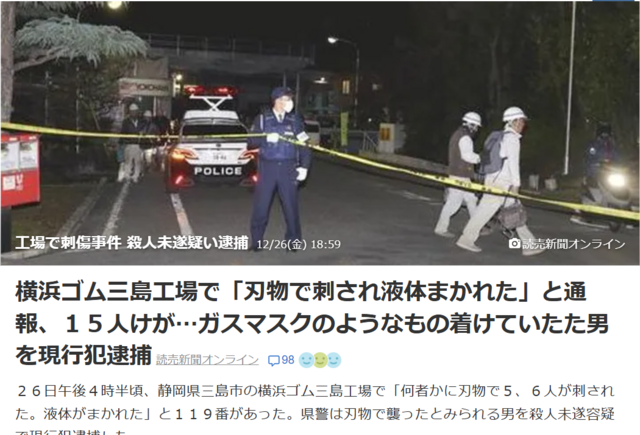 スレッドタイトル:「刃物で刺され液体まかれた」と通報