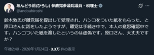 原口氏を巡っては、立憲民主党と公明党が合流して立ち上げた新党「中道改革連合」への参加を拒否し、SNS上でも同党への批判を繰り返してきた経緯がある。そして、ゆうこく連合の政党化を目指して衆院選に立候補すると表明していたなかで、22日のX(旧ツイッター)では「ゆうこく連合の現時点での国政政党要件獲得に失敗しました」とつづるなど、目まぐるしく変わる情勢に苦労している様子も伺えた。