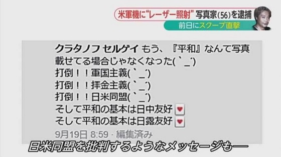 スレ画は沖縄米軍機にレーザー照射して逮捕された、グラビアアイドル インリンの所属事務所社長 平岡のブログに書かれていたもの。