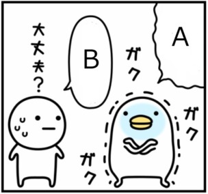 B「痛~い!って言いたいのに!」