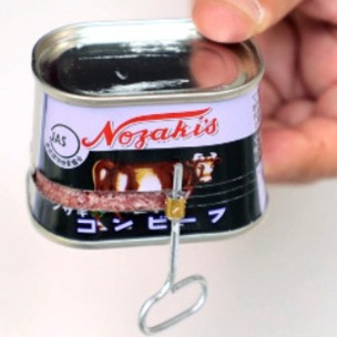 「ノザキのコンビーフ」の、巻き取り鍵で開ける台形「枕缶」は