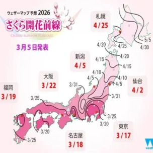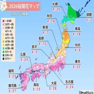 同予想によれば、2026年の桜の開花は