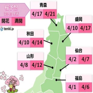 満開予想を発表しました。東北は桜の開花・