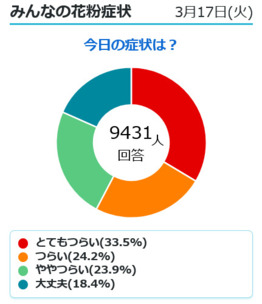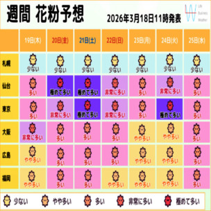 ウェザーニュースは今年の春の「第三回花粉飛散予想」を発表しました。