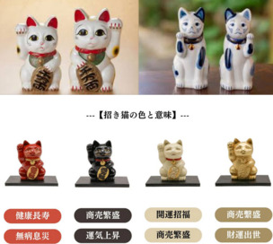 招き猫の違いは、主に挙げている手・色・手の長さにあります。