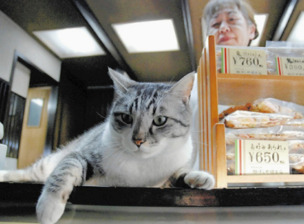 9年間、毎日店頭に立ってお客さんを迎えてきた猫さん。