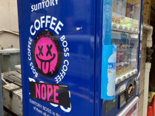 でおなじみの自販機が、NOPEのロゴで落書きするように