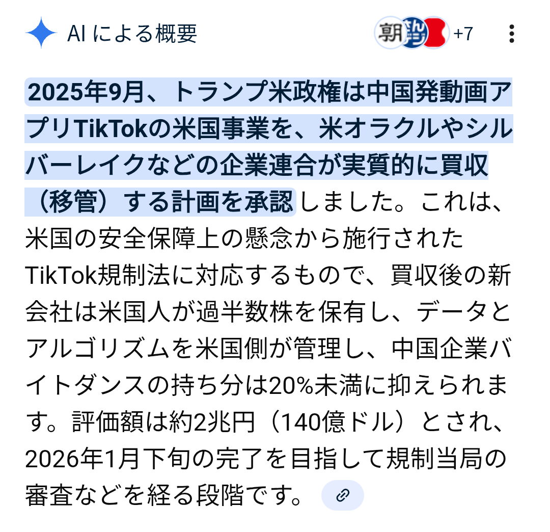| 015 | 名無しさん | 2025/12/11(木) 15:59:59 | アメリカが買収するんやろ。 | 画像 |