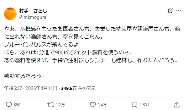 | 011 | 名無しさん | 2026/04/18(土) 09:48:06 | そんな事より飛行機の燃料がほぼ灯油だと知 | 画像なし |