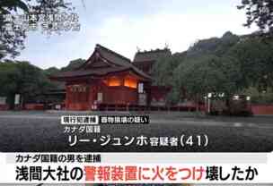 静岡県富士宮市の富士山本宮浅間神社の敷地内に設置されていた赤外線警報装置に火をつけて壊した疑いで、カナダ国籍の男が現行犯逮捕されました。