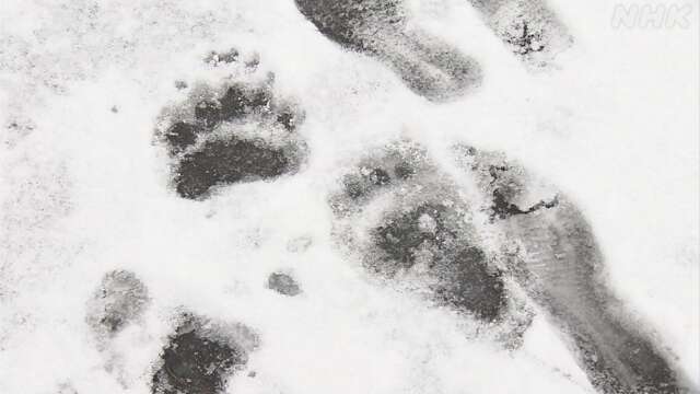 NHKが現場を取材したところ、住宅街の道路に降り積もった雪にヒグマとみられる動物の足跡が残されていました。