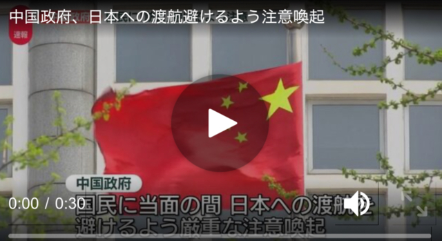「朗報」中国政府、日本への渡航避けるよう注意喚起、