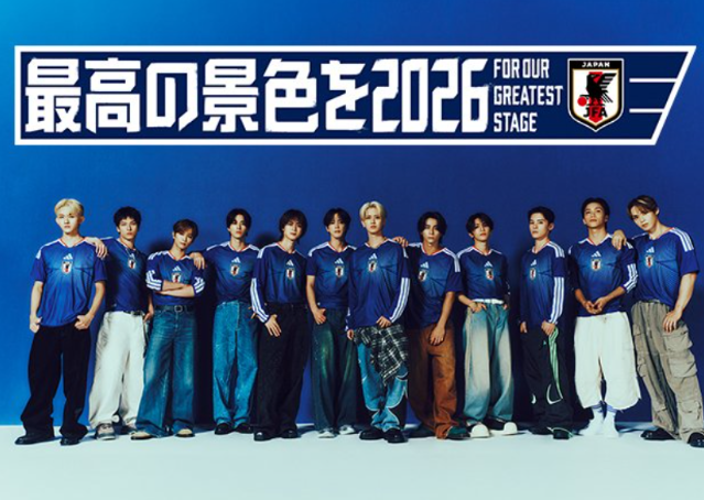 画像はJFAが10日に公開。音楽グループ「JI BLUE」を起用したキャンペーンの画像で、赤や青、黒の配色などで構成される画像に対し、