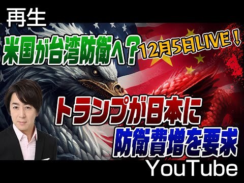 12/5 LIVE! トランプ「台湾の占領を阻止するために米同盟国の能力を強化する」