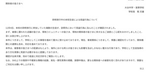 大谷中学・高校(京都市東山区)の校長は2025年12月8日、「複数の生徒が、訪問先におい