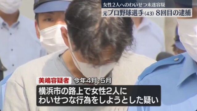 【速報】元プロ野球選手(43)わいせつ未遂容疑で8回目の逮捕