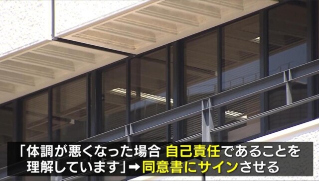 「体調が悪くなった場合は自己責任」とする同意書にサインさせていたということです。