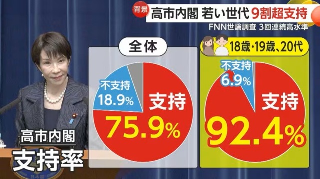 スレッドタイトル:高市内閣支持率75.9% 若い世代の支持率は92.4% FNN世論調査