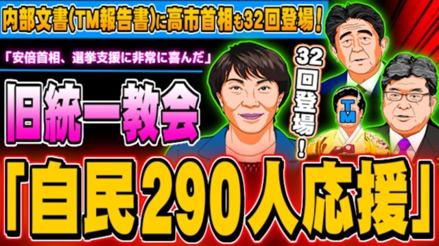スレッドタイトル:統一教会「自民だけで290人応援」、故安倍氏と6回面談