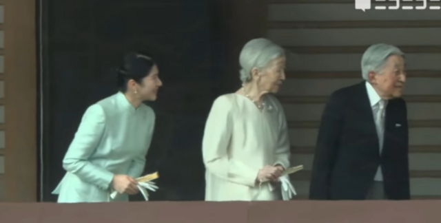天皇、皇后両陛下は上皇ご夫妻、秋篠宮ご夫妻ら皇族方と並んで宮殿・長和殿のベランダに立ち、参賀者に手を振って応えられた。