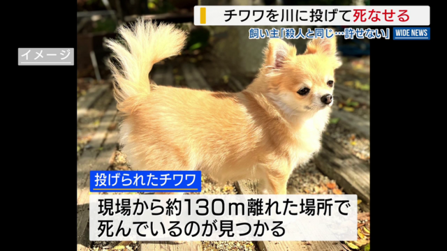 「男は盗んだ車に乗っていた衣服やノートパソコンとともに、犬の『チワワ』を、あちらの川に向けて投げ捨てたということです」