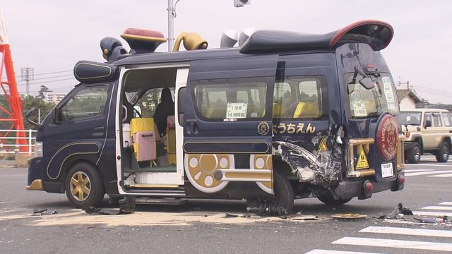 24日午前、福岡県遠賀町の交差点で、幼稚園の送迎バスと乗用車が衝突する事故があり、園児9人を含む12人が病院