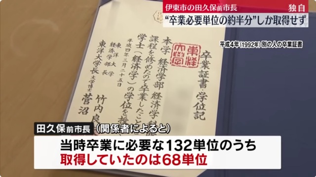 スレッドタイトル:伊東市の田久保前市長“卒業必要単位の約半分”しか取得せず