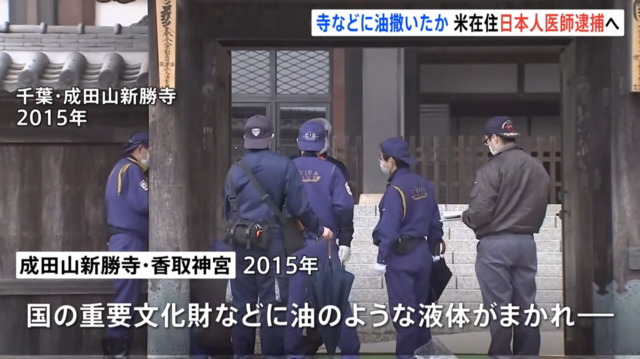 寺や神社に油散布した日本人医師逮捕