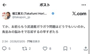 サナエトークンに触れるのが嫌なので自虐的に自分の武道館ガラガラライブで目くらましw