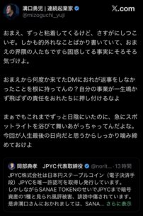 金融庁の許可を得たJPYC代表の岡部典孝に対して、悔し紛れで吠え散らかす断末魔の無許可賎業溝口w