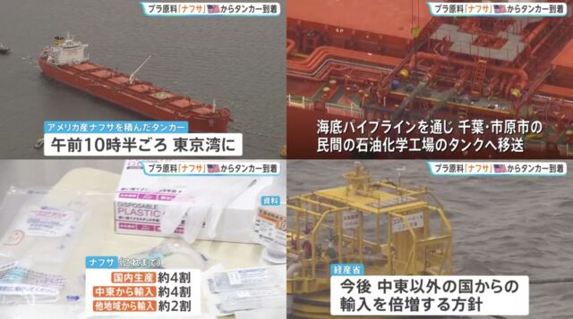 中東情勢の影響で、供給不足が懸念されているプラスチックなどの原料=「ナフサ」について、代替調達先として期待されるアメリカからタンカーが到着しました。