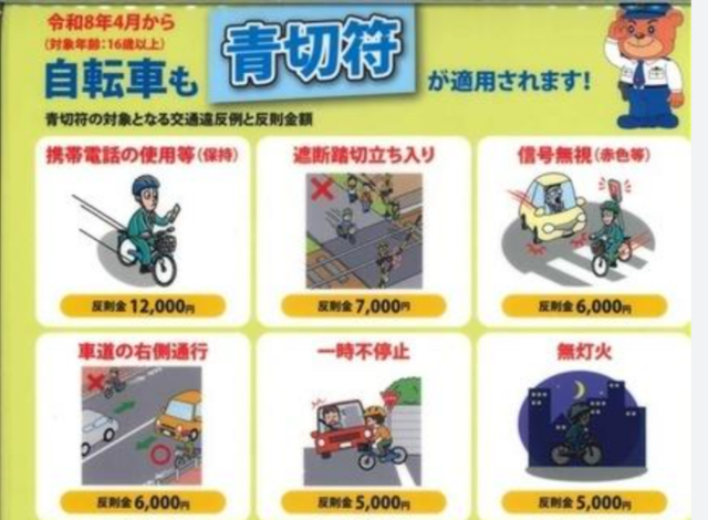 広島県警広署は9日、1日に始まった自転車の交通違反に反則金を納めさせる「青切符」制度が悪用され、